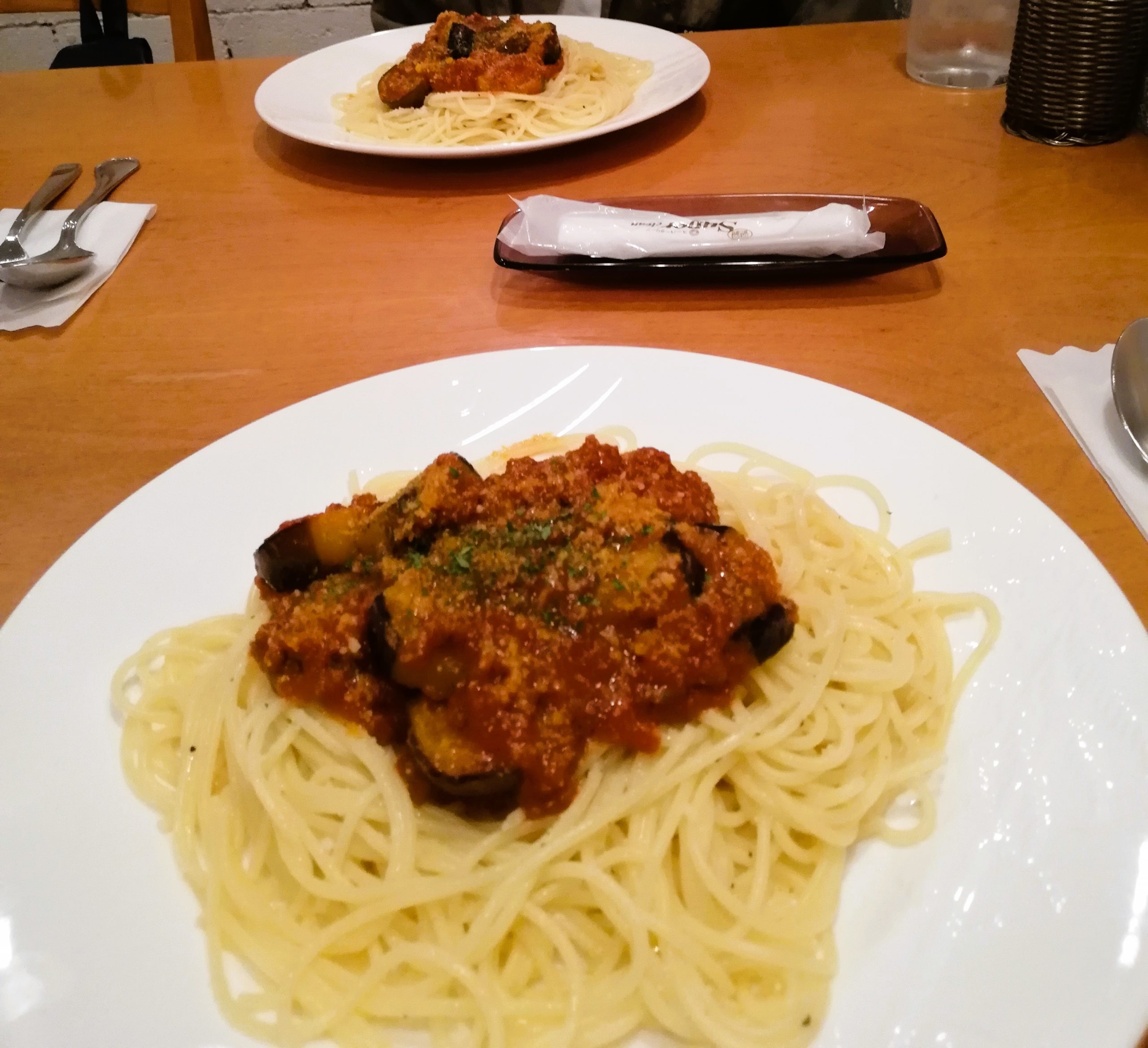私が訪れたのは桜の季節。 テーブルに運ばれてきたのは、ナスミート(茄子とミートソースのパスタ)。 茄子がトロトロに煮込まれていて、ミートソースのコクがしっかり染み込み、素朴ながらめちゃくちゃおいしい! トマトの酸味と茄子の甘みが絶妙で、食べ進めるごとに「また食べたい」って思わせる一皿でした。