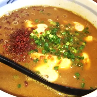 ちなみに、↓本家のカレーうどんはこんな感じ!赤色のフレークのようなものが大変おいしく、これが何でできているのか知っている方がいたらぜひ教えて下さい。鐘庵さんは静岡発祥ということで、エビのかき揚げなんかもされているので、桜エビかなと思い、桜エビを今回トッピングしました。